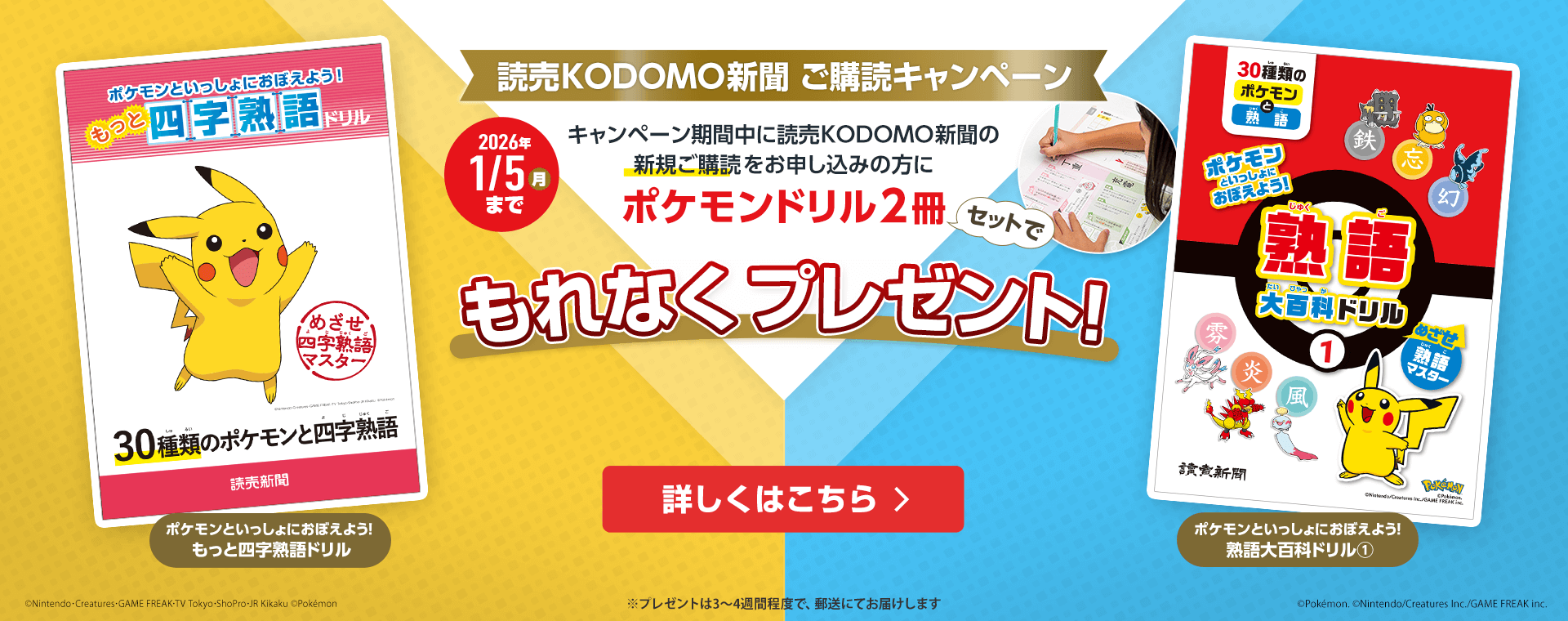 毎週発行の読売KODOMO新聞の中から覚えておきたいニュースや考えてほしい社会問題をピックアップして出題します。週末などに親子で読売KODOMO新聞を読み解きながら時事問題の知識を身につけることができます。
